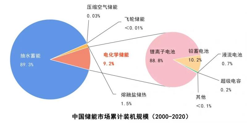 中國(guó)能源研究會(huì)儲(chǔ)能專委會(huì)、中關(guān)村儲(chǔ)能產(chǎn)業(yè)技術(shù)聯(lián)盟4月下旬發(fā)布的《儲(chǔ)能產(chǎn)業(yè)研究白皮書2021》顯示,截至2020年底,中國(guó)已投運(yùn)儲(chǔ)能項(xiàng)目累計(jì)裝機(jī)規(guī)模3560萬千瓦,其中,抽水蓄能的累計(jì)裝機(jī)規(guī)模最大,為3179萬千瓦;電化學(xué)儲(chǔ)能的累計(jì)裝機(jī)規(guī)模位列第二,為326.9萬千瓦,在各類電化學(xué)儲(chǔ)能技術(shù)中,鋰離子電池的累計(jì)裝機(jī)規(guī)模最大,為290.2萬千瓦。