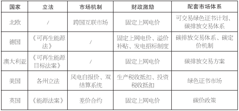 歐美國(guó)家在推進(jìn)新能源發(fā)展過(guò)程中,不僅規(guī)定了中長(zhǎng)期戰(zhàn)略目標(biāo),還重視能源立法及體制機(jī)制設(shè)計(jì)。在立法方面,英國(guó)出臺(tái)《能源法案》及《電力市場(chǎng)改革》,德國(guó)不斷修訂《可再生能源法》等,以完整的法律框架保證了能源政策的前瞻性、連續(xù)性、可操作性。在市場(chǎng)機(jī)制方面,英國(guó)的雙向付費(fèi)差價(jià)合約制度通過(guò)合同價(jià)格信號(hào)引導(dǎo)低碳電力投資,保障可再生能源發(fā)電企業(yè)收益。在財(cái)政激勵(lì)政策方面,德國(guó)在可再生能源發(fā)展的不同階段,靈活制定包括固定上網(wǎng)電價(jià)、溢價(jià)補(bǔ)貼和發(fā)電招標(biāo)制度在內(nèi)的財(cái)政激勵(lì)政策。在配套市場(chǎng)體系方面,英國(guó)設(shè)置包括碳排放稅和配套碳價(jià)政策以限制燃煤發(fā)電;美國(guó)基于可再生能源配額制建立配套的綠色證書(shū)市場(chǎng),強(qiáng)制性可再生能源發(fā)展目標(biāo)與綠證市場(chǎng)相互配合、協(xié)調(diào)運(yùn)行。