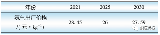 2021—2030年投資風電制氫,在滿足8%內(nèi)部收益率下,各投資年份最低氫氣出廠價格如表3所示。