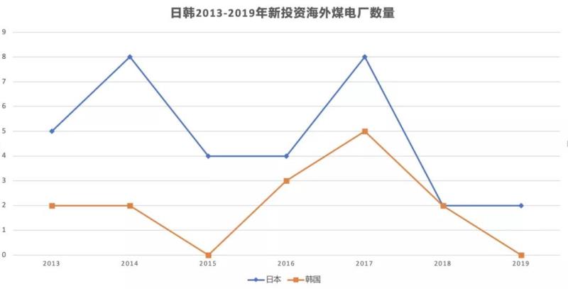 近年來,日韓的新增海外煤電投資出現(xiàn)放緩跡象?!叭蛎弘姽踩谫Y追蹤”的數(shù)據(jù)顯示,2017年以來,兩國海外融資項(xiàng)目數(shù)量均持續(xù)下降,韓國2019年無新增投資項(xiàng)目。