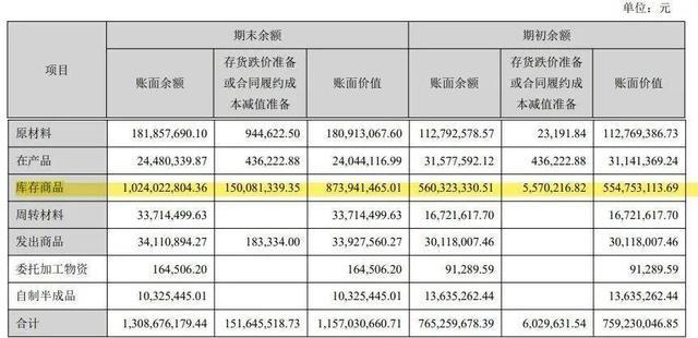 2020年末,存貨中的庫存商品(產成品)從上年同期的5.6億增長到10.2億,同比大增92%,公司為此還計提了1.5億的存貨價跌準備。