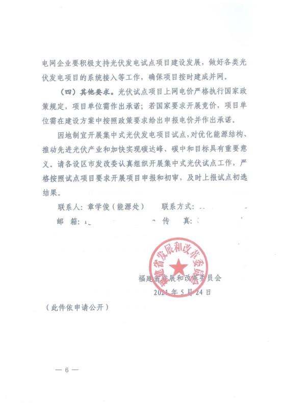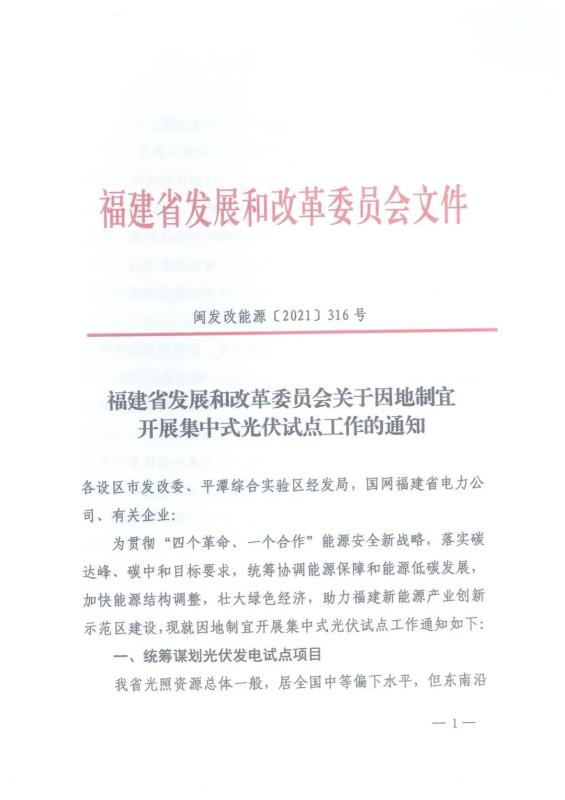 5月24日,福建省發(fā)改委下發(fā)《關(guān)于因地制宜開展集中式光伏試點(diǎn)工作的通知》,就集中式光伏電站試點(diǎn)項(xiàng)目的申報(bào)提出指導(dǎo)意見。