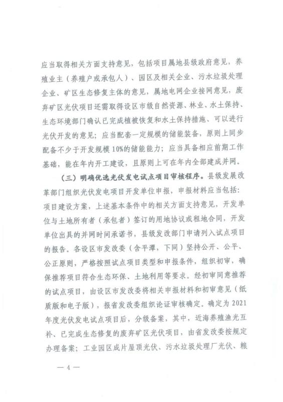 在項(xiàng)目優(yōu)選方面,特別強(qiáng)調(diào)不得破壞生態(tài),申報(bào)材料不僅要獲得項(xiàng)目屬地縣級(jí)各政府部門的相關(guān)審批意見,養(yǎng)殖業(yè)主、園區(qū)企業(yè)、污水企業(yè)以及礦區(qū)修復(fù)主體的意見以及用地協(xié)議和租賃合同也包含在內(nèi)。其中,漁光互補(bǔ)、廢棄礦區(qū)光伏項(xiàng)目由省級(jí)發(fā)改委備案辦理,另外三類項(xiàng)目由屬地發(fā)改委部門辦理。