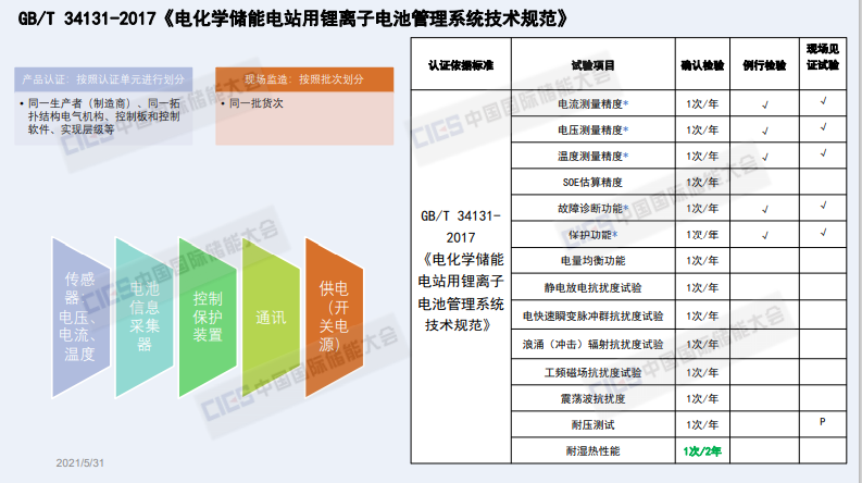 其實CQC一直強調(diào)對于儲能產(chǎn)品,想打造像當年光伏產(chǎn)品有全過程的管控和全過程的監(jiān)管,從我們事前的建造到產(chǎn)品型式實驗,到我們的到貨抽檢,到我們事后持續(xù)的監(jiān)督以及故障分析,全方位地保障儲能產(chǎn)品的高品質(zhì)發(fā)展。同時提幾個建議,尤其對儲能電池PCS和BMS的關(guān)鍵部件,我們建議把它的實驗報告或者認證書作為結(jié)果采信的必然要求。同時,我們建議增加了儲能核心部件的現(xiàn)場檢驗或者到貨檢驗的過程,同時對儲能系統(tǒng)后運行,我們也建議做持續(xù)的跟蹤、持續(xù)的監(jiān)督。