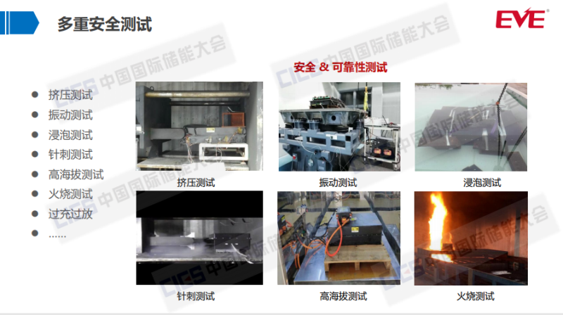 電池產(chǎn)品做出來之后,我們也會(huì)經(jīng)過一系列的相關(guān)安全測(cè)試。所以在剛才說的生產(chǎn)上的短期性能測(cè)試,下線之后也會(huì)做相應(yīng)的安全測(cè)試,包括擠壓、振動(dòng)、火燒、過充等等,而且都要全部滿足要求。