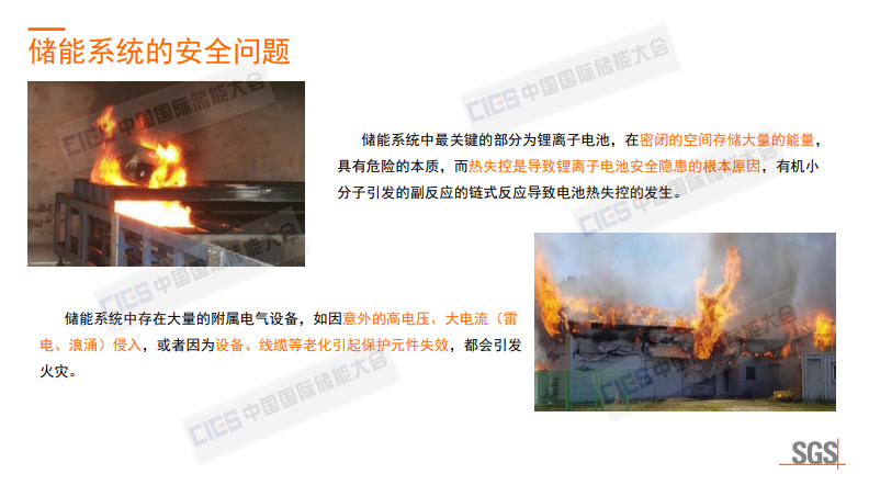 我的演講題目分為四個(gè)部分:一、鋰離子電池系統(tǒng)的安全問題;二、鋰離子電池系統(tǒng)安全風(fēng)險(xiǎn)原因分析;三、鋰離子電池系統(tǒng)相關(guān)國際標(biāo)準(zhǔn)概述;四、關(guān)于SGS。