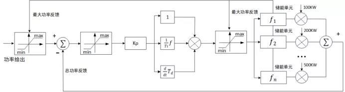 群閉環(huán)自控式大規(guī)模儲能由多個儲能執(zhí)行單元組成,儲能單元的可輸出功率受電池的SOC、最高電圧、最低電壓、最高溫度、最低溫度影響,可用輸出功率會在運行過程中發(fā)生突變(尤其充放電末端),大規(guī)模儲能系統(tǒng)要接受調(diào)度的調(diào)峰調(diào)頻響應(yīng),在儲能單元充放電末端或故障響應(yīng)式,儲能功率響應(yīng)速度就會存在影響。