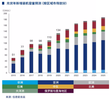 美國(guó)市場(chǎng)方面,大型集中式光伏電站的建設(shè)計(jì)劃基本未受疫情影響,但遲遲未撤銷(xiāo)的居家令導(dǎo)致戶用與非戶用光伏裝機(jī)容量的增長(zhǎng)相較于疫情前的增長(zhǎng)水平而言較為平穩(wěn),這是由于新冠疫情的限制使得光伏項(xiàng)目的建設(shè)更加復(fù)雜,而當(dāng)?shù)卣膮^(qū)劃管制則推遲了光伏項(xiàng)目的建設(shè)進(jìn)度。然而,即使是在分布式光伏領(lǐng)域,安裝商們也在很大程度上通過(guò)線上銷(xiāo)售和許可平臺(tái)的形勢(shì),取得較好發(fā)展。中東地區(qū)的光伏市場(chǎng)發(fā)展仍然集中于激烈的電價(jià)競(jìng)爭(zhēng)和自上而下的大型集中式光伏電站采購(gòu),且該地區(qū)的光伏產(chǎn)業(yè)仍在努力發(fā)展。北非與南非市場(chǎng)未來(lái)五年的新增裝機(jī)容量將占整個(gè)非洲市場(chǎng)新增裝機(jī)容量的一半以上,但新興市場(chǎng)正在縮短項(xiàng)目建設(shè)周期,減少儲(chǔ)備項(xiàng)目積壓。伍德麥肯茲已在中東與非洲地區(qū)跟蹤超過(guò)1吉瓦的工商業(yè)項(xiàng)目。