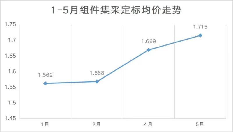 截止5月底,定標的組件采購價格仍然維持在1.8元/瓦以下,均價約為1.72元/瓦,暫時還未看到大規(guī)模突破1.8元/瓦報價中標的情況。但光伏們了解到,近期的項目招標中,投標企業(yè)的價格均已突破1.85元/瓦。
