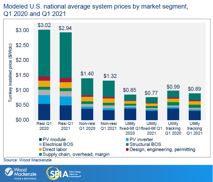 圖片: 2020年Q1 和2021年Q1按市場(chǎng)細(xì)分的模擬平均系統(tǒng)價(jià)格