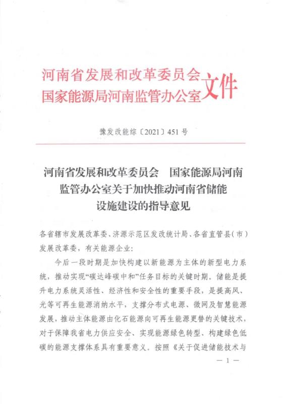 中國儲能網(wǎng)訊:日前,河南省發(fā)改委及河南能監(jiān)辦發(fā)布《關(guān)于加快推動河南省儲能設(shè)施建設(shè)的指導意見》明確儲能是提升電力系統(tǒng)靈活性、經(jīng)濟性和安全性的重要手段,是提高風、光等可再生能源消納水平,推動主體能源由化石能源向可再生能源更替的關(guān)鍵技術(shù)。
