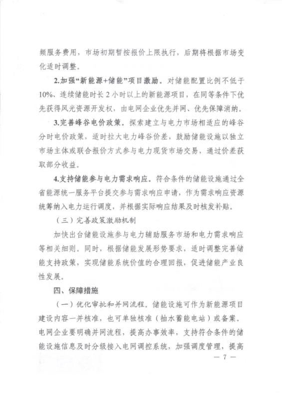 文件指出,鼓勵新能源項目配套建設(shè)儲能。對儲能配置比例不低于10%、連續(xù)儲能時長2小時以上的新能源項目,在同等條件下優(yōu)先獲得風光資源開發(fā)權(quán),由電網(wǎng)企業(yè)優(yōu)先并網(wǎng)、優(yōu)先保障消納。