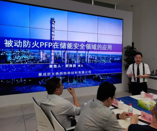 會(huì)議開始,公司首席科學(xué)家賈緯民博士以“被動(dòng)防火PFP在儲(chǔ)能安全領(lǐng)域的應(yīng)用”為調(diào)研團(tuán)專家做主題分享。