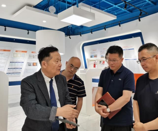 交流結(jié)束后,在公司總裁慕成、首席科學(xué)家賈緯民博士的陪同下,調(diào)研團(tuán)專家一行參觀了公司展廳,現(xiàn)場(chǎng)進(jìn)行了技術(shù)交流和講解。