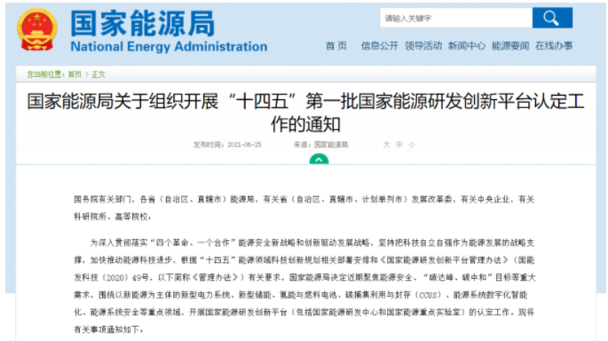 國家能源局關(guān)于組織開展“十四五”第一批國家能源研發(fā)創(chuàng)新平臺(tái)認(rèn)定工作的通知