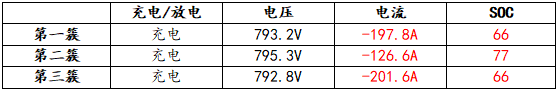 此外,由于電池內(nèi)阻較小,因不一致性造成的各簇電壓差異即使僅有幾伏,簇間不均流就會(huì)很大,如下表中某電站實(shí)測(cè)數(shù)據(jù)所示,充電電流差異達(dá)到75A(與理論平均值相比偏差達(dá)42%),偏差電流會(huì)導(dǎo)致部分電池簇出現(xiàn)過充過放現(xiàn)象;極大影響充放電效率、電池壽命以及甚至導(dǎo)致嚴(yán)重安全事故。