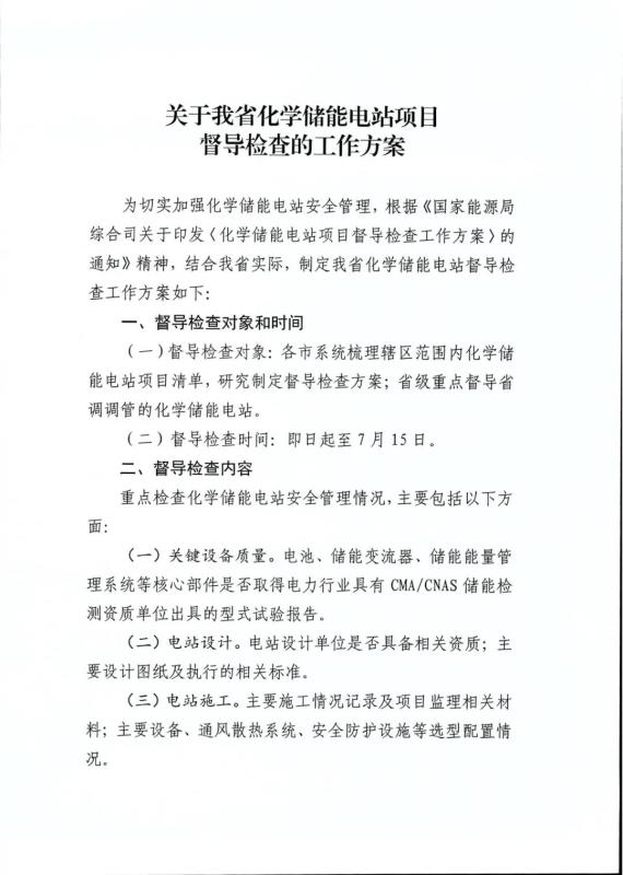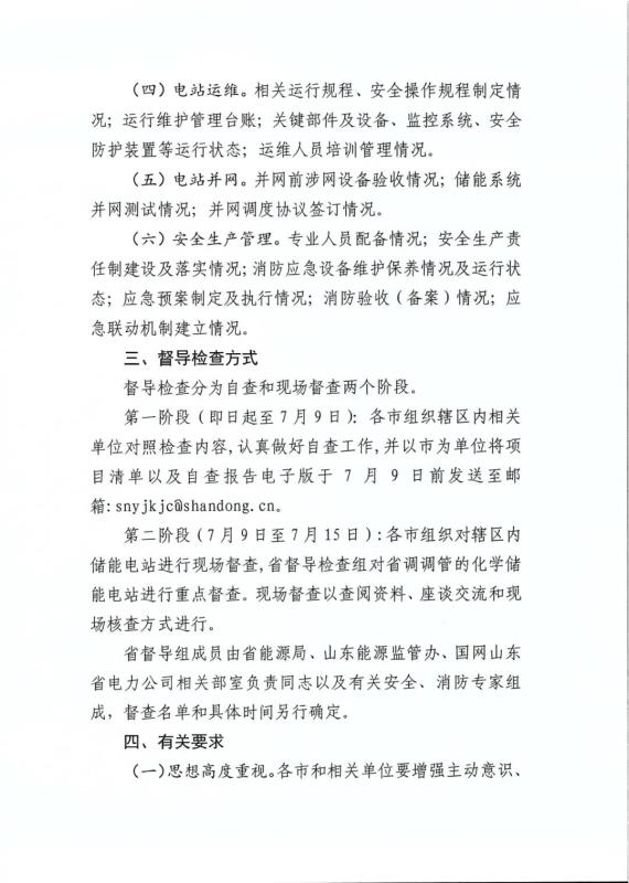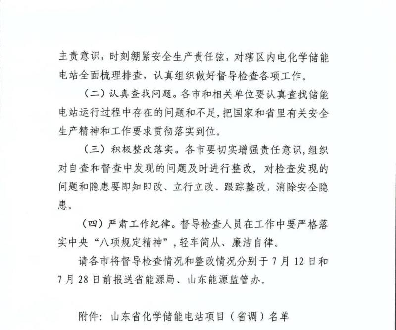 7月5日,山東省能源局、國家能源局山東監(jiān)管辦公室發(fā)布《關(guān)于我省化學儲能電站項目督導檢查的工作方案》,明確了山東化學儲能電站項目的督導檢查對象、督導檢查時間、督導檢查內(nèi)容、督導檢查方式及有關(guān)要求。