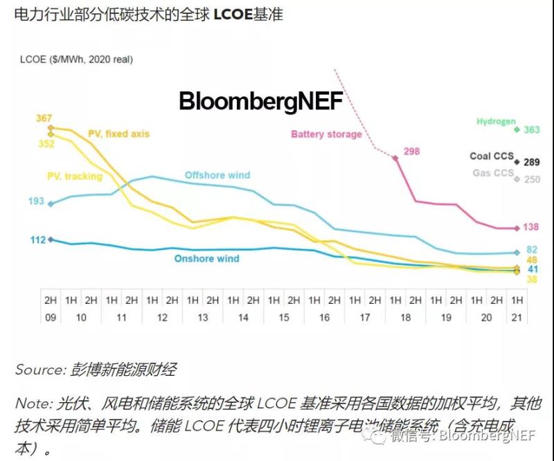 彭博新能源財經(jīng)首次將碳捕獲和封存系統(tǒng)納入煤炭和天然氣的LCOE計算中。根據(jù)對過去項目的分析,彭博新能源財經(jīng)估計,在五個關(guān)鍵地區(qū)中,搭配CCS系統(tǒng)的煤電LCOE為133到449美元/MWh,氣電LCOE為156到336美元/MWh。目前,使用綠氫的氣電LCOE為293到535美元/MWh。2021年上半年,小型核反應(yīng)堆在負(fù)載跟隨模式下的LCOE為354美元/MWh,在全天運(yùn)行模式下的LCOE為240美元/MWh。更多信息,請期待即將發(fā)布《LCOE亮點(diǎn):氫能、CCS和小型核反應(yīng)堆》