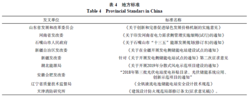 2019年以來,山東、河南、江蘇、青海等地根據(jù)各個省份的自身情況,制定出有關(guān)的儲能相關(guān)標準規(guī)則,如表4所示。