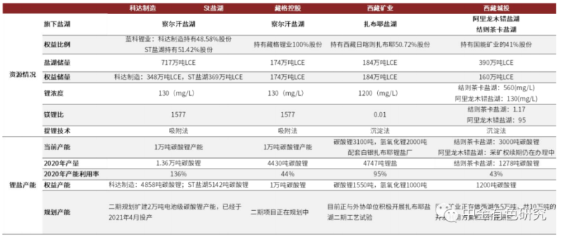 圖表65:國內(nèi)主要鋰行業(yè)標(biāo)的比較