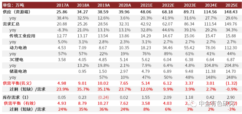 3.供需平衡:2021-2025年鋰行業(yè)供需逐步走向緊缺