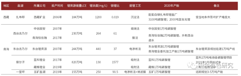 前期開發(fā)進(jìn)程相對落后,未來有望走向更大規(guī)模和更優(yōu)質(zhì)量。我國鹽湖中蘊藏的鋰資源量要遠(yuǎn)大于硬巖鋰礦,但青海鹽湖鋰濃度相對較低、鎂鋰比較高,西藏鹽湖海拔高且基礎(chǔ)設(shè)施薄弱,因此前期開發(fā)進(jìn)程相對落后。我們認(rèn)為我國鹽湖提鋰經(jīng)過長期的探索和積淀,正迎來加速發(fā)展的轉(zhuǎn)折點,將向更大規(guī)模和更優(yōu)質(zhì)量的方向迭代。
