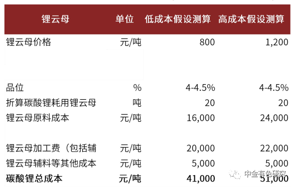 圖表38:鋰云母提鋰成本測算(不考慮副產(chǎn)品收益)