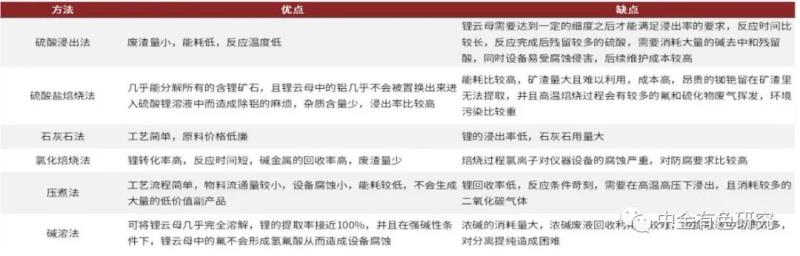 資料來源:秦伍等《鋰云母提鋰工藝的研究進(jìn)展》,中金公司研究部