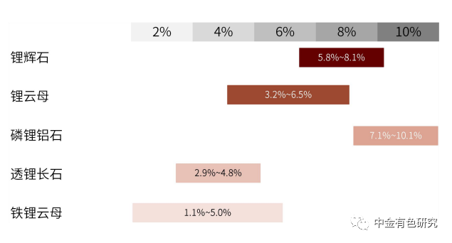 圖表36:鋰礦對應(yīng)品位比較