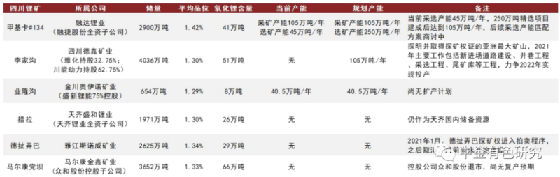圖表34:國內(nèi)鋰輝石礦山資源稟賦及開發(fā)進(jìn)度