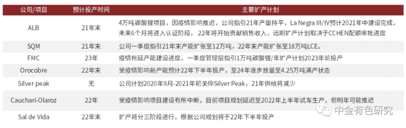 2.2 南美鹽湖:受疫情影響供給增量低于預(yù)期,產(chǎn)能釋放仍具不確定性
