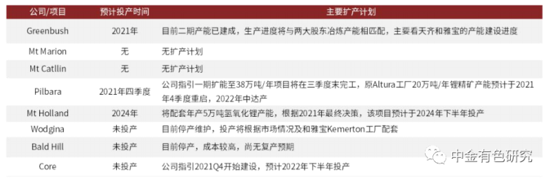 資料來源:Pilbara、贛鋒鋰業(yè)、銀河資源等公司公告,中金公司研究部
