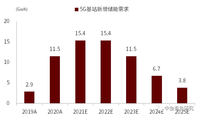 圖表20:2021-2025 年我國 5G 基站全年新增儲能需求