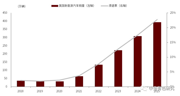 圖表15:2018-2025年美國新能源汽車銷量預(yù)測