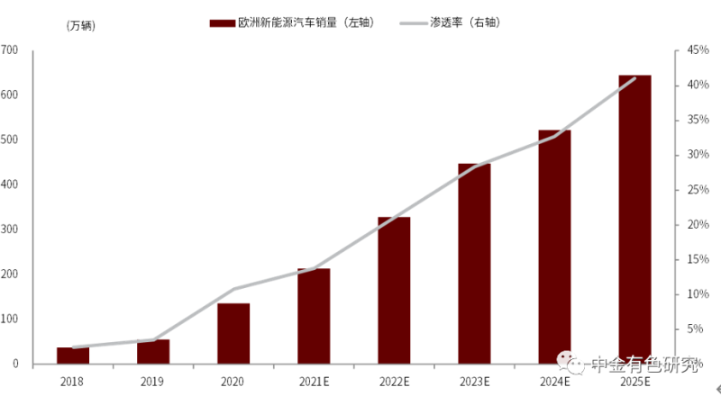 圖表13:2018-2025年歐洲新能源汽車產(chǎn)量預(yù)測