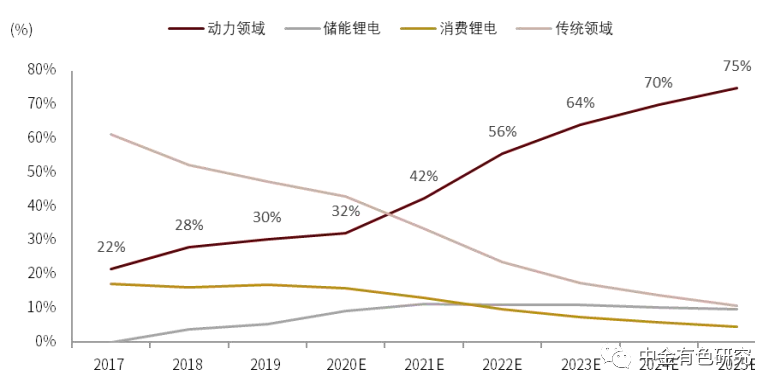 圖表2:2021-2025年全球鋰需求結(jié)構(gòu)