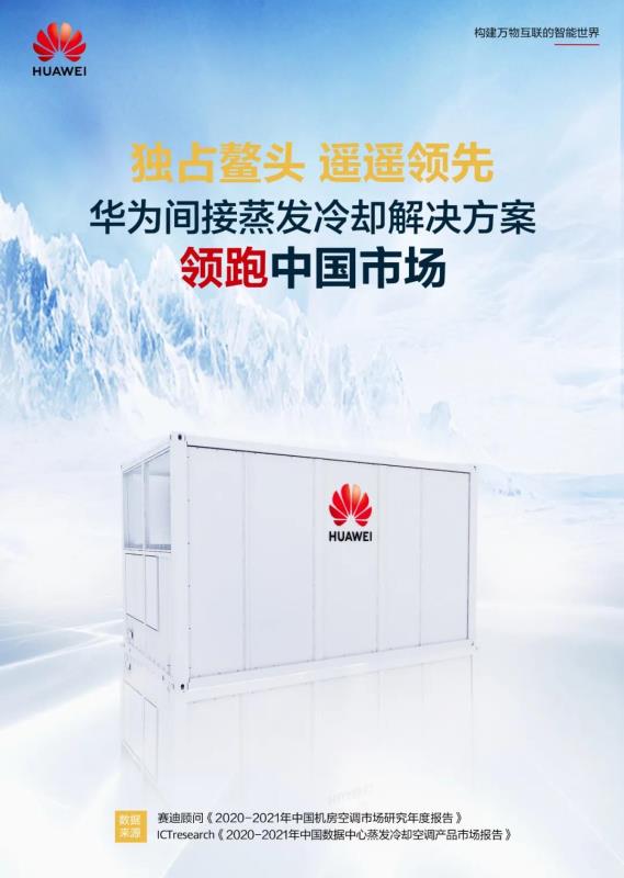 賽迪顧問《2020-2021年中國機(jī)房空調(diào)市場研究年度報(bào)告》指出,華為持續(xù)在間接蒸發(fā)冷卻上進(jìn)行技術(shù)革新,推動(dòng)間接蒸發(fā)冷卻技術(shù)向智能化發(fā)展,并在運(yùn)營商、IDC、政府等各行各業(yè)均得到廣泛應(yīng)用及認(rèn)可。2020 年,華為間接蒸發(fā)冷卻解決方案問鼎中國市場排名第一。