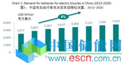 圖1:中國(guó)電動(dòng)自行車電池需求規(guī)模柱狀圖,2013-2020