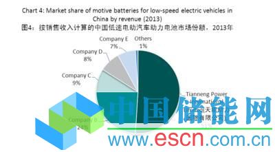 圖4:按銷售收入計(jì)算的中國(guó)低速電動(dòng)汽車動(dòng)力電池市場(chǎng)份額,2013年