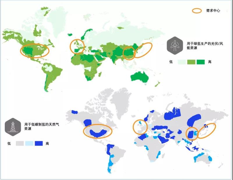 圖1:全球氫資源及需求中心分布