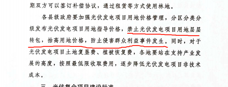 一方面,榆林市文件中要求“光伏發(fā)電項(xiàng)目需提供與縣級(jí)可再生能源平臺(tái)公司簽訂的土地租賃協(xié)議”,即意味著光伏企業(yè)需要從縣級(jí)可再生能源平臺(tái)公司轉(zhuǎn)租土地。但陜西省能源局于2020年5月下發(fā)的用地文件明確強(qiáng)調(diào)“禁止光伏發(fā)電項(xiàng)目用地層層轉(zhuǎn)包,抬高用地價(jià)格,防止侵害群眾利益事情發(fā)生?!?