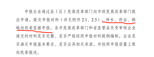 另一方面,陜西省2021年風(fēng)、光項(xiàng)目申報(bào)文件中特別指出神木、府谷兩縣直接向省級(jí)發(fā)改委報(bào)送申報(bào)材料,但根據(jù)榆林市文件要求各縣市區(qū)方案必須經(jīng)過榆林市可再生能源發(fā)展領(lǐng)導(dǎo)小組審核。