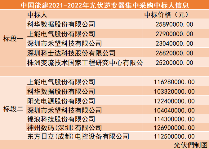 以下是具體逆變器中標(biāo)人信息以及中標(biāo)價(jià)格: