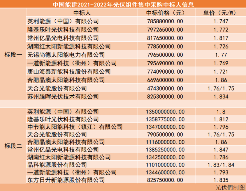 7月19-20日,中國(guó)能建2021-2022年光伏組件和逆變器集中采購(gòu)中標(biāo)結(jié)果公示。據(jù)了解,5月17日,中國(guó)能建發(fā)布2021-2022年光伏組件集中采購(gòu)招標(biāo)公告。公告顯示,本次招標(biāo)為2021年7月至2022年6月股份公司所屬企業(yè)投資或承建項(xiàng)目所需光伏組件采購(gòu),預(yù)估總量為1.2GW。