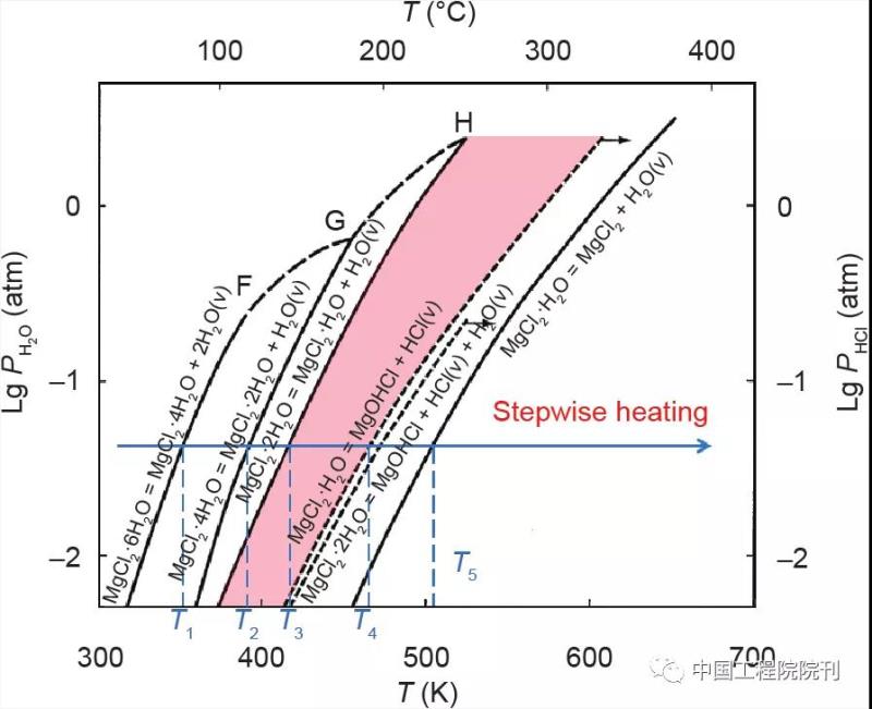根據(jù)MgCl2水合物的H2O和HCl的蒸氣壓圖(圖11),Kipouros和Sadoway使用多步加熱法來純化MgCl2的水合物。