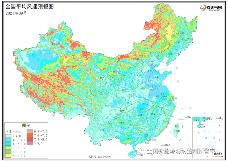 附圖5 全國(guó)2021年9月平均風(fēng)速分布預(yù)報(bào)圖