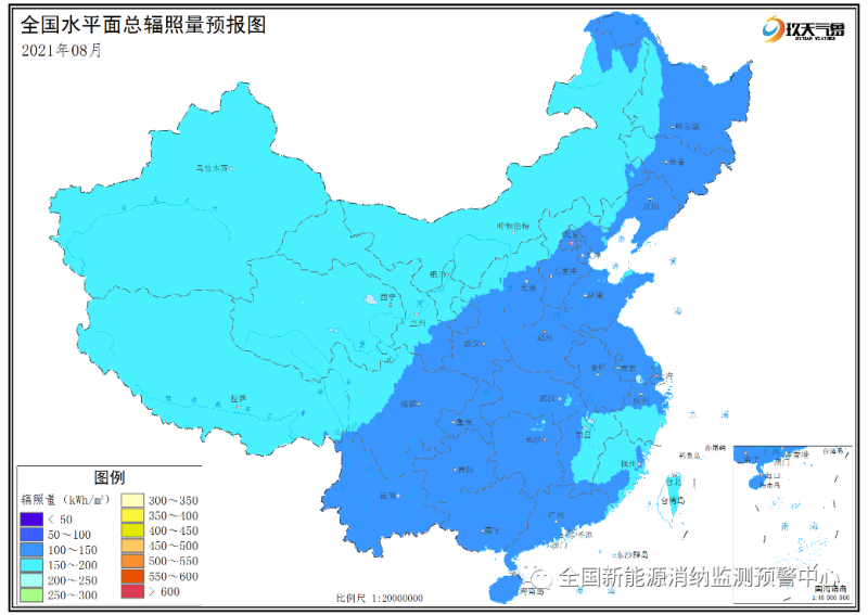 附圖4 全國(guó)2021年8月水平面總輻照量預(yù)報(bào)圖