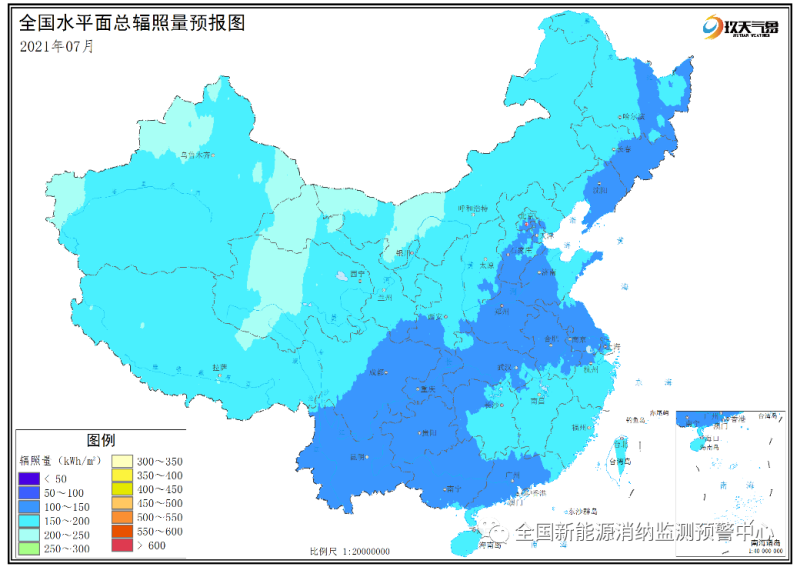 附圖2 全國(guó)2021年7月水平面總輻照量預(yù)報(bào)圖