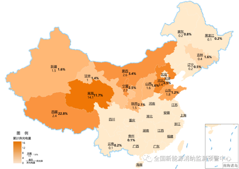 截至6月底各地區(qū)累計(jì)棄光電量(億千瓦時(shí))及棄光率