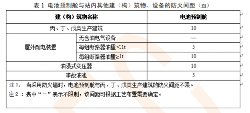 5、儲(chǔ)能電站中的建構(gòu)筑物不應(yīng)低于耐火二級(jí),并要滿足建構(gòu)物之間及與配間裝置之間的間距,與變電站防火規(guī)范的基本相同;
